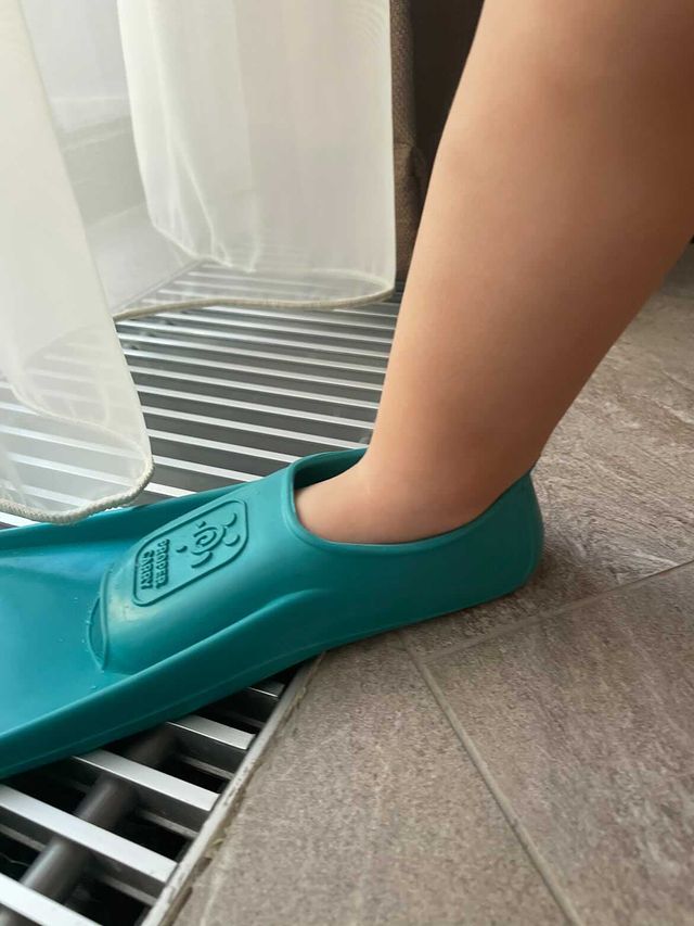 Помимо работы ног, малыш в ластах более активно двигается, а это значит, что он не замёрзнет в воде.